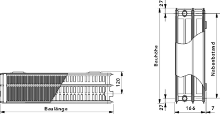 Nabenabstand = Bauhöhe minus 54 mm
